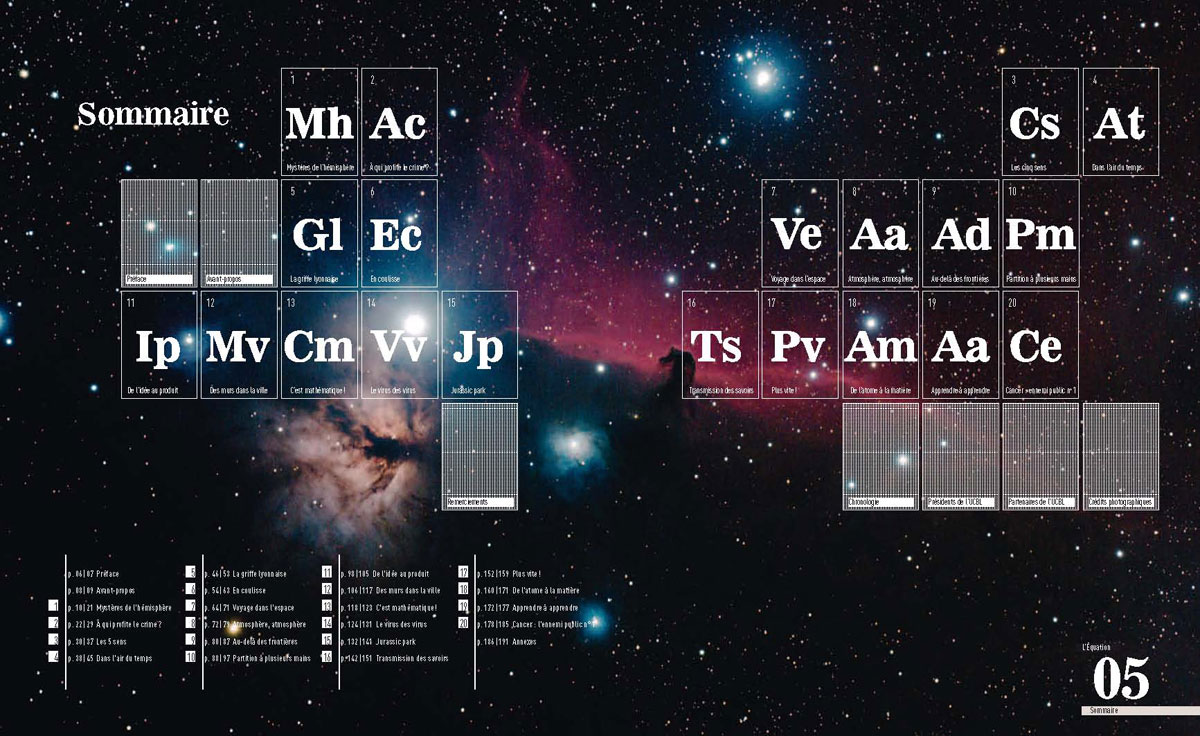 Voyagez dans le temps au cours des quelques 191 pages et revivez toutes les thématiques dans lesquelles Lyon 1 à été précurseur depuis sa création ! Ainsi, vous pourrez suivre les traces des dinosaures, arpenter les mystères du cerveau humain, découvrir l'infiniment petit en entrant dans le nanomonde, tenter de comprendre les avancées de la médecine en cancérologie ou encore explorer l'univers au télescope !